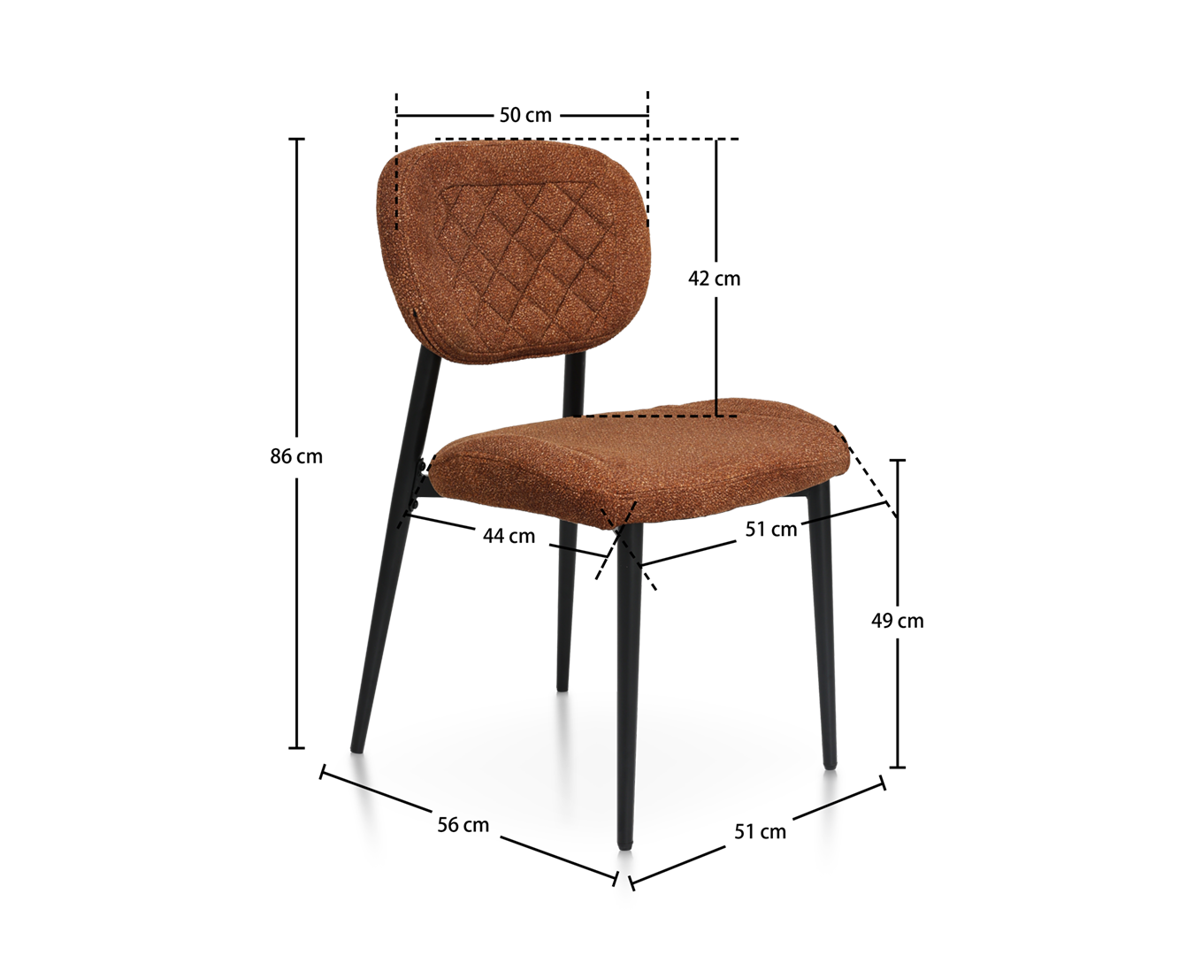 • 검은 금속 프레임은 강력한 안정성을 제공 할뿐만 아니라 풍부한 갈색 실내 장식을 아름답게 보완합니다. 의자의 디자인에는 곡선 등받이와 패딩 시트가 포함되어있어 모든 사용자에게 최대한의 편안함을 보장합니다. 저녁 식사 파티를 주최하든 조용한 식사를 즐기 든이 의자는 식사 경험을 높입니다.