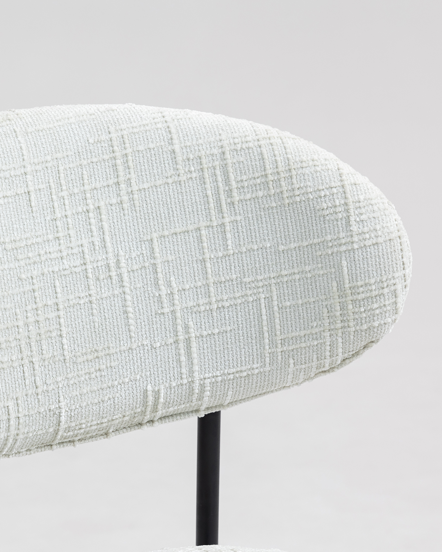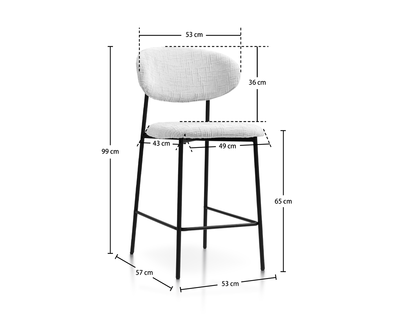 • 시트와 등받이 모두에 봉제 된 질감의 흰색 장식품을 특징으로하는이 제품은 현대적인 환경에 정교한 터치를 제공합니다. 튼튼한 검은 금속 프레임은 강력한지지를 제공 할뿐만 아니라 매끄럽고 미니멀리스트 미학을 추가합니다.