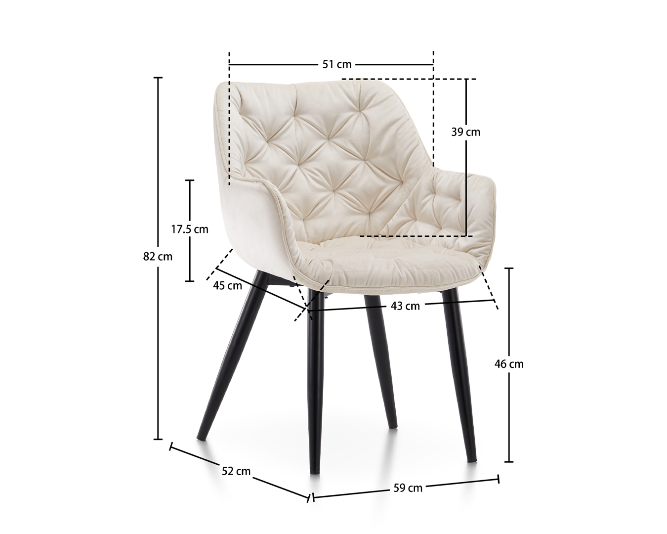 • 식당, 거실 또는 침실 구석에 배치하든이 의자는 우아함과 편안함을 더합니다. 검은 다리는 강력한 기초와 현대적인 미학을 제공하여 모든 내부에서 눈에 띄는 작품입니다.