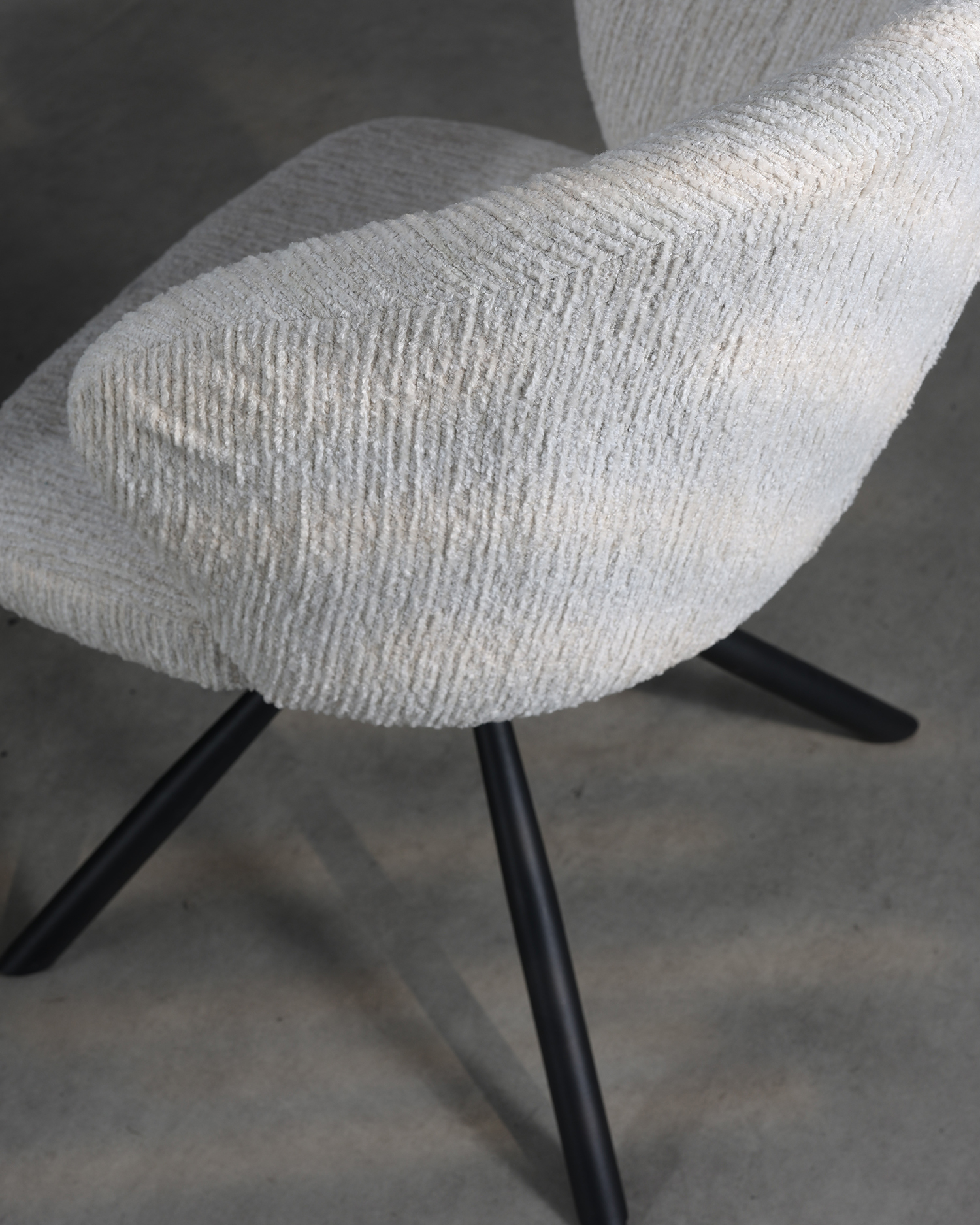 • 미학과 인체 공학에 중점을 둔이 제품은 크림색의 질감이있는 실내 장식품을 자랑하여 모든 방에 정교함을 더 해줍니다. 의자의 곡선 등받이와 충분한 좌석 공간은 탁월한 편안함을 제공하는 반면 검은 금속 다리는 강력한지지와 현대적인 감각을 제공합니다.